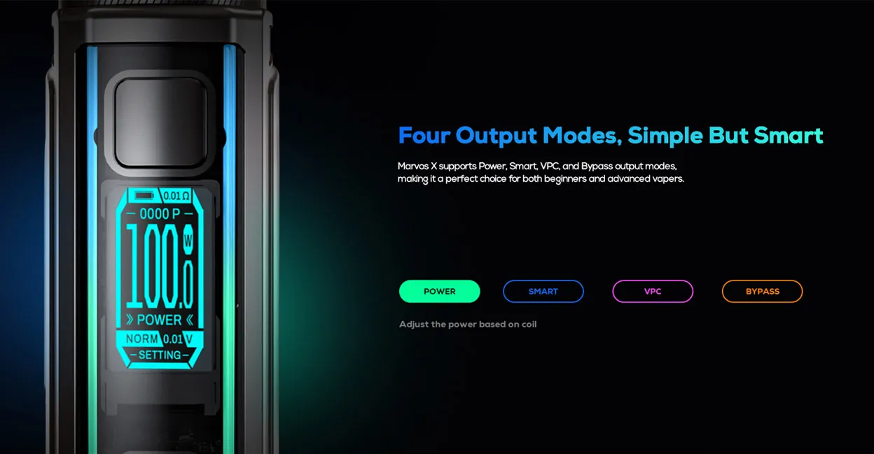 Is the first pod mod equipped with a fantastic lighting design and brand-new Double-D Mesh coil technology. With more personalized settings and stunning light effects, Marvos X can bring you a special full-spectrum vaping and take your personal style to the next level!
